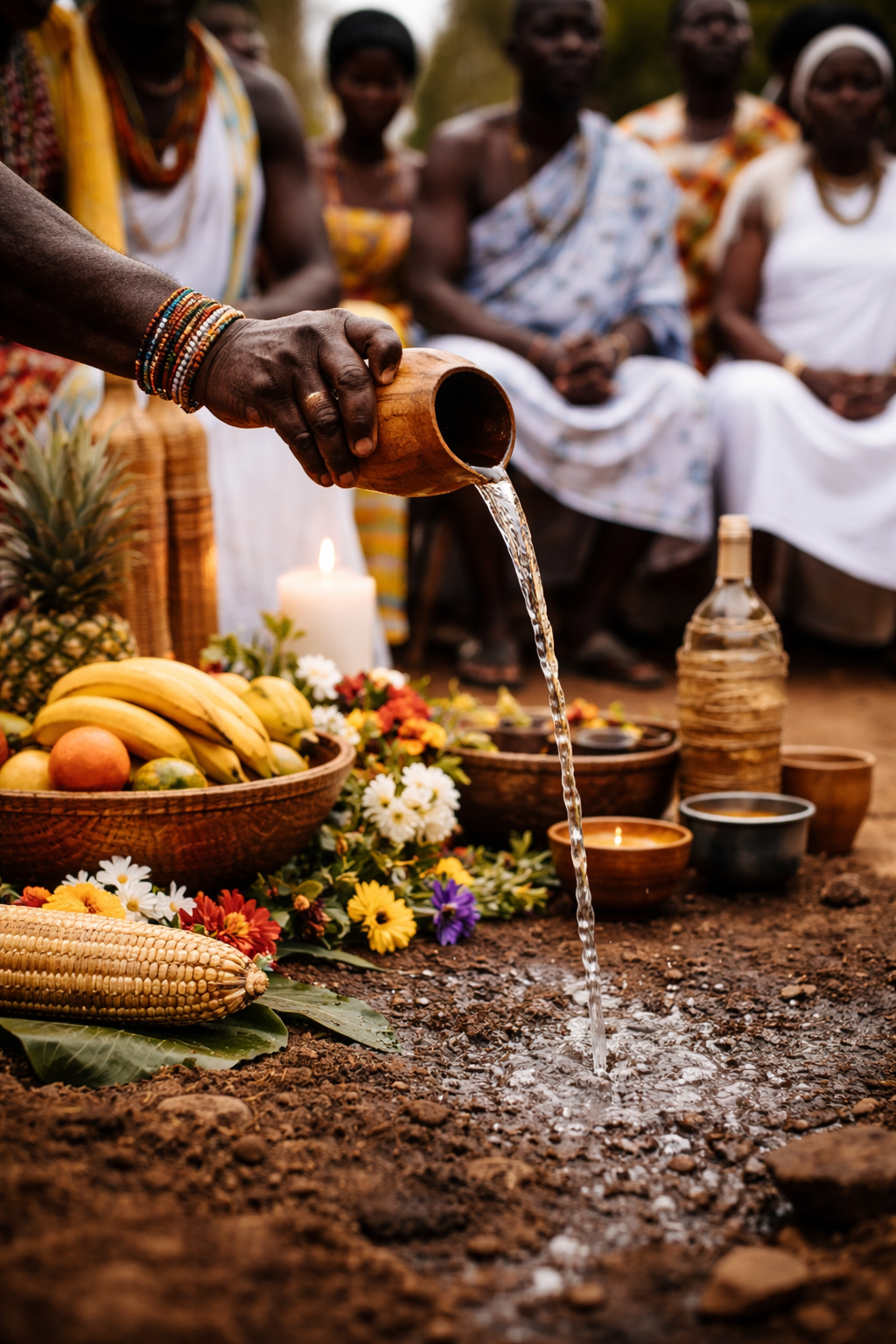 Pouring libations is a precise and intentional practice. Before you pour, you must first open your heart and bring yourself into alignment with what you truly desire to communicate. The liquid serves as the conductor, the channel through which your intention travels. The calabash is the representation of the Earth in your hands. But the practice does not end with the pour. When you drink what remains, your heartbeat is brought into synchronization with the core of the Earth itself, sealing your intention and completing the communication.
